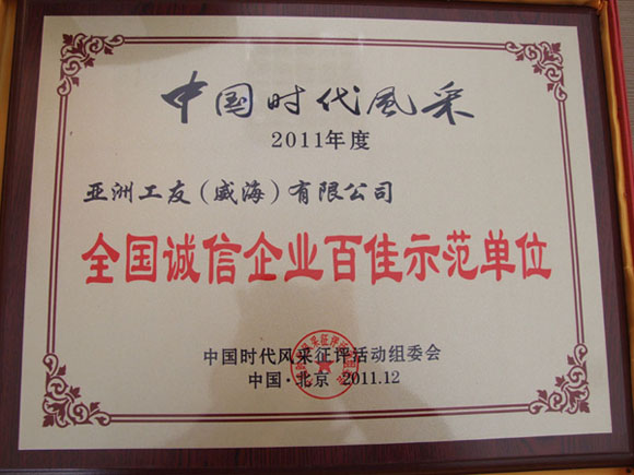 公司被授予“全國誠信企業(yè)百佳示范單位”稱號